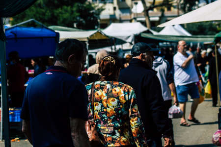 Limassol Cyprus March 14, 2020 View of an unidentified people shopping at the market of Limassol in the morning