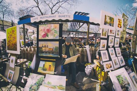 Paris, France - April 18, 2016 - A painter draw the paint in Montmarte hill