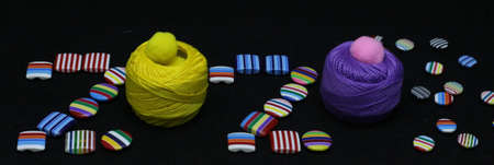 Happy new year 2020 clothing brand colorful buttons Photography. Merry Christmas 2020 sale on tailor shop.