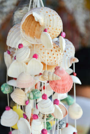 Sea shell mobile hanging decoration in the shop for sell tourist.