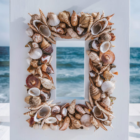 seashell frame with place for text on a light background