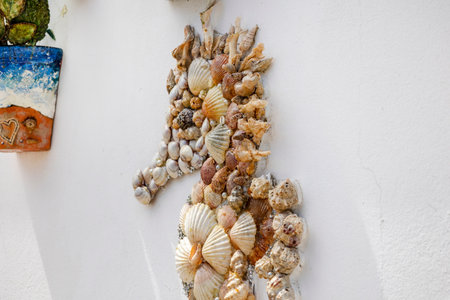 Handmade souvenir decorated with different sea shells