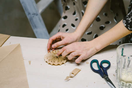 Creating hand made christmas ornaments. DIY personalized xmas decoration. Hand made of kraft paper. Step by step instructions.
