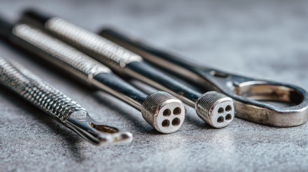 A close-up image showcasing precision tools essential for metalwork and crafting, featuring intricate details and textures against a gray background.