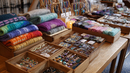A warm and inviting image of a cozy artisanal shop interior, filled with handmade pottery, decor items, and wooden furnishings. Perfect for themes related to craftsmanship, home decor, and small businesses.