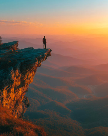 Beautiful sunset in the mountains, tranquility and tranquility in travel and hiking. beautiful dark sky and clouds