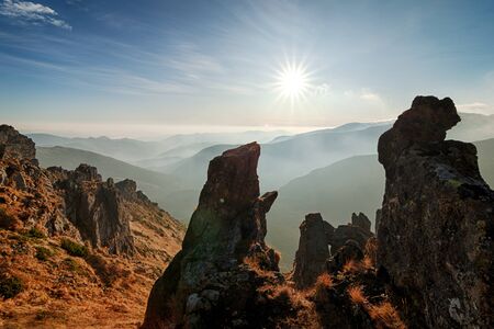 Wild rocky and mountainous nature of Eastern Europe. Landscape background with copy space for text. Selective focus, toned.