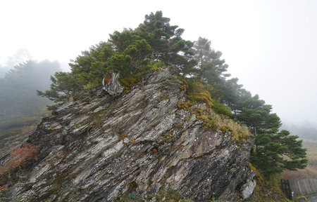 The mushroom shaped rock a billion year old unique geological slate stone pillar and icon of Fanjing mountain in Guizhou China
