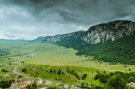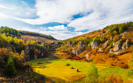 mountain landscape in summer morning, Romania, Fundatura Ponorului