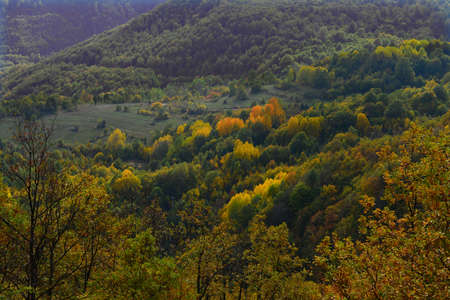 Mountain rural landscape with autumn colors In Brasov county, Romania