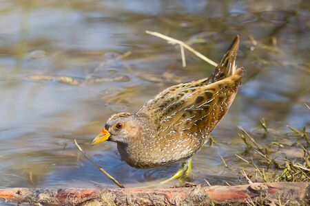 Spotted crake or Porzana porzana in a wildlife close up.