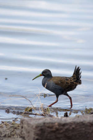 Sora rail or sora crake looking for food by a lake in Michigan