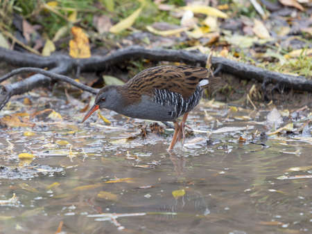 Water rail, Rallus aquaticus, single bird by water, Warwickshire, November 2021