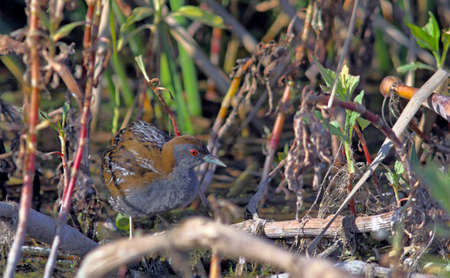 Baillon's crake in action with nice grass in background