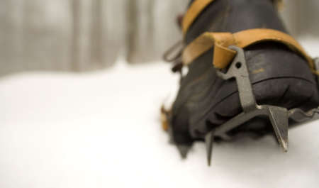 Boots with crampons on snow