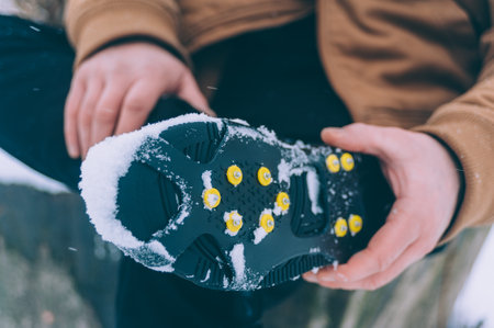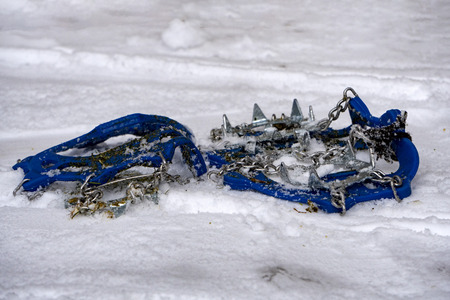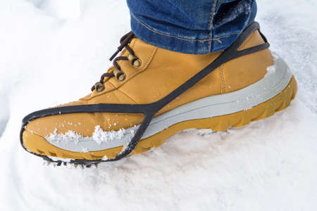 Ice shoes for shoes on a background of snow