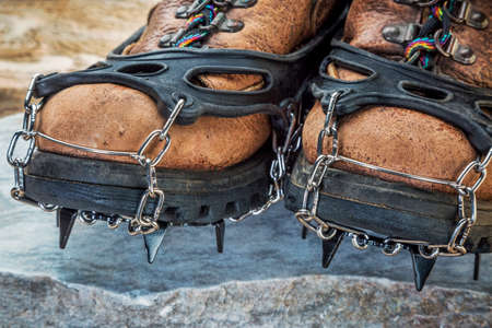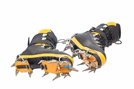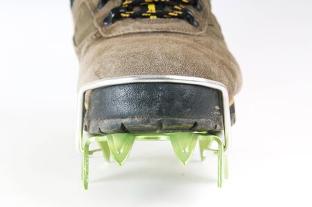 Photo of mountain shoes with spikes isolated