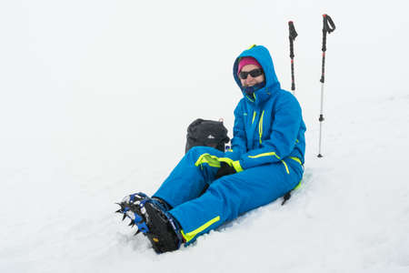 Extreme travel in Tyrol hike on glacier with crampons