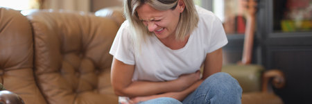 stomach ache colly woman suffering from abdominal pain