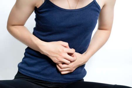 Digestion problems,Woman with stomach pain after eating,Hand female holding her belly
