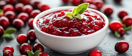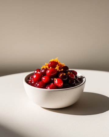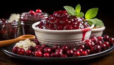 AI Generated. zesty cranberry sauce with a bright red hue made from fresh cranberries and a hint of sweet orange zest