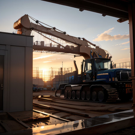 Heavy construction equipment wide angle photo shot in the evening time