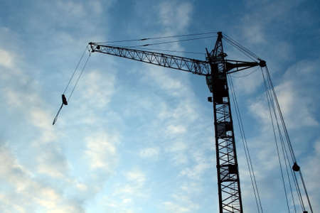lifting crane over blue sky and clouds