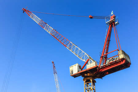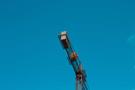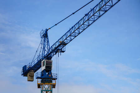 Construction tower crane against blue sky