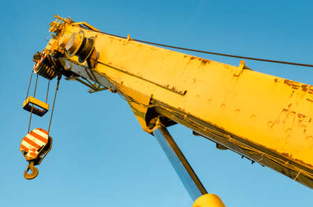 A lifting mechanism with a hook at the end of the boom of a heavy truck crane
