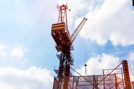 against the blue sky high tower crane, sky and crane