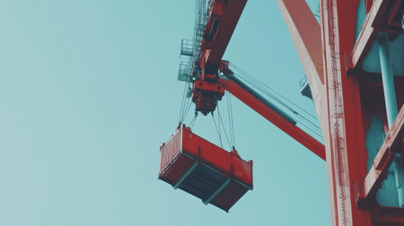 A vibrant image of an industrial crane lifting a container in a port, showcasing the essential elements of logistics and shipping operations within modern infrastructure.