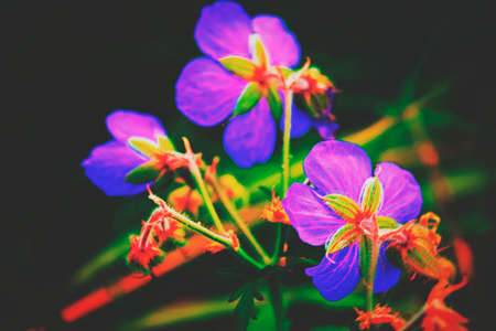 Meadow Crane's-bill(Geranium pratense L.) blossom in autumn. Close up.