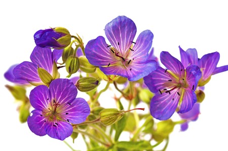 Photo of beautiful Cranesbill flower isolated on white background