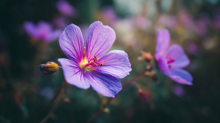 Delicate Purple Geranium Bloom Unveiling its Beauty in Soft Light