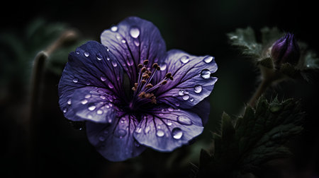 Purple Geranium flower with water drops on its petals.