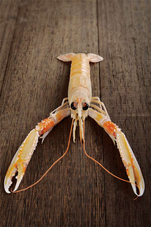 Norway lobster on a wooden chopping board