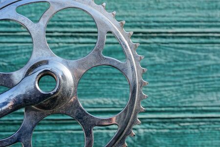 Bicycle chain and gear close-up. Bicycle chain and gear detail.