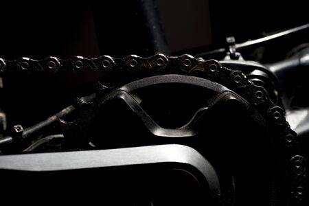 This close-up image showcases the intricate details of a bicycle gear and chain mechanism, highlighting the engineering and design elements in modern cycling.