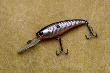 Fishing lure isolated on white. Wobbler in three color. Silver and black colors.