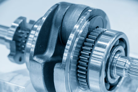 Close-up scene the motorcycle crank shaft parts . The motor cycle maintenance concept.