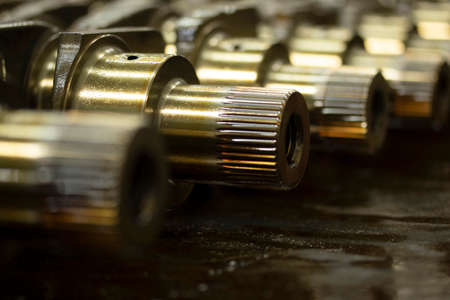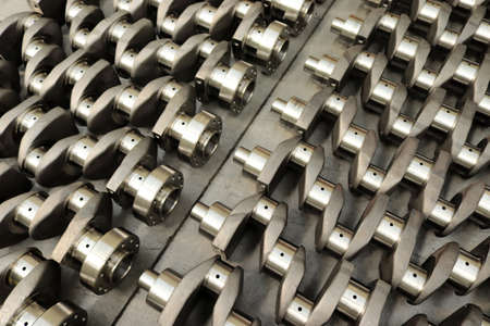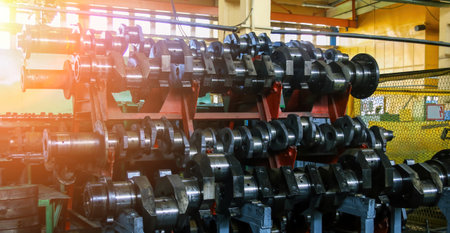 Automotive engine assembly line, set of crankshaft ready to be assembled on assembly line