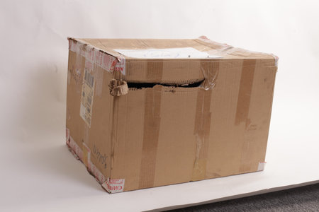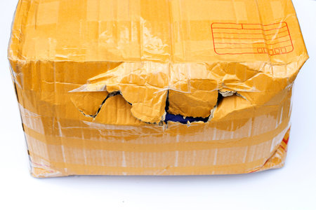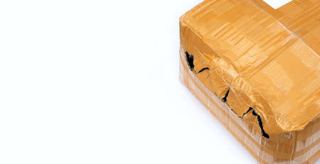 Damaged shipping box on white background