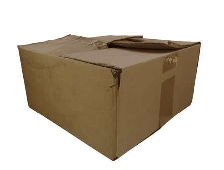 close up of a cardboard box on white background with clipping path