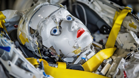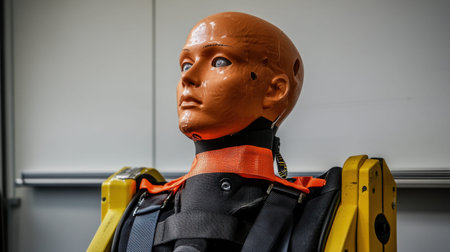 A detailed view of a realistic dummy model used for safety testing and research in robotics and engineering. Ideal for education and demonstration purposes.