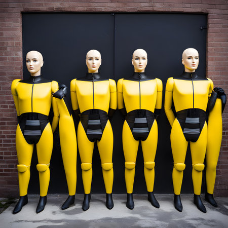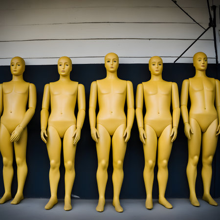 Heads of the mannequins close-up, standing behind each other