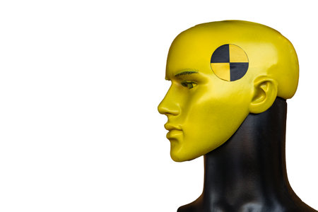 Crash Test Dummy, mannequin head, human imitation, robot, artificial intelligence, on white background