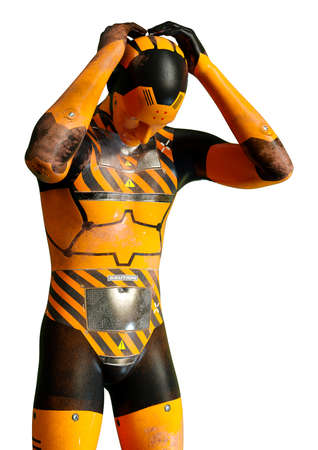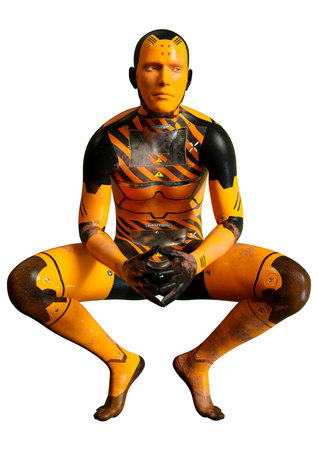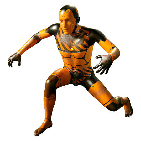 3D rendering of a male robot isolated on white background