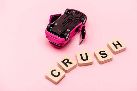Car accident. A car being torn to pieces on the side of urban road. The dangers of speeding and drunk driving. Life, liability and property insurance