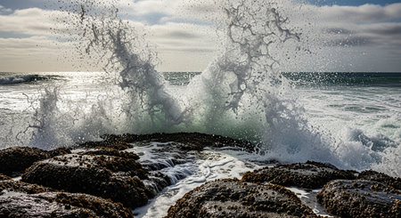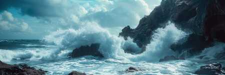 Feel the raw power of nature with waves crashing on rugged rocks. Experience the thrilling beauty of oceanic fury!