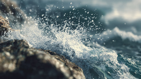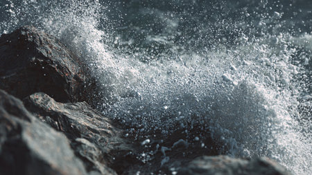 splashes of water on the rocks in the sea, nature series